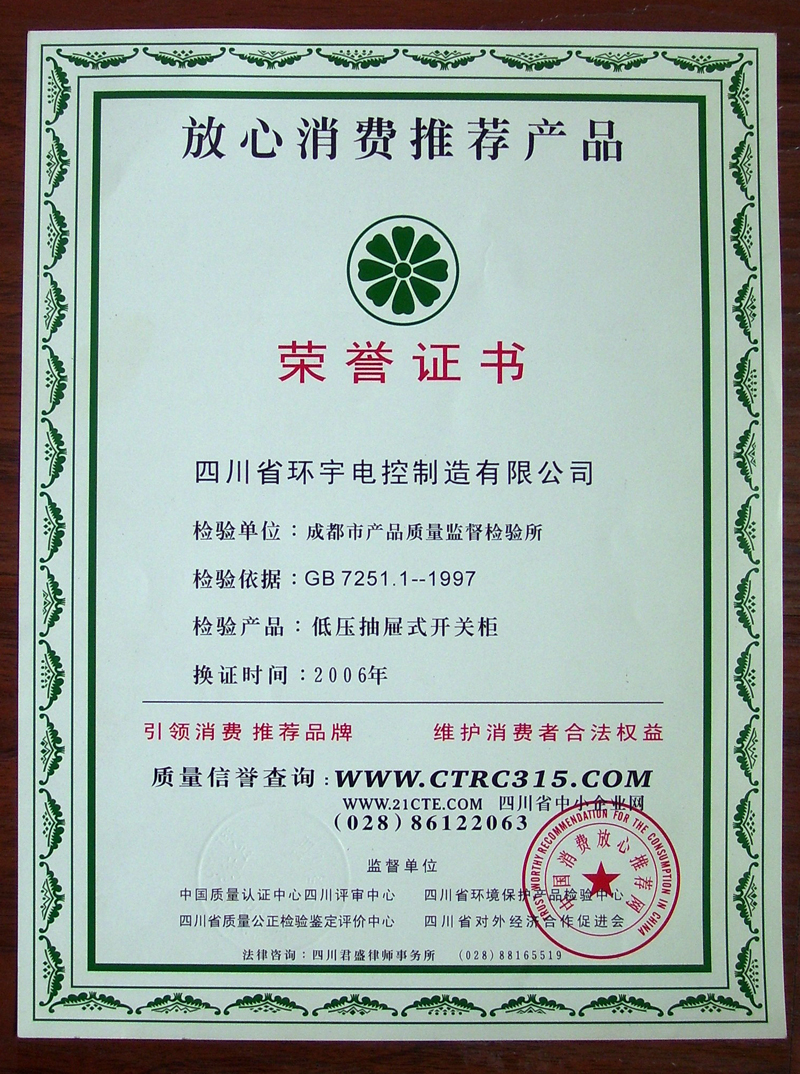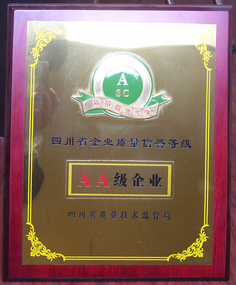 質(zhì)量、信譽雙保障示范單位 四川省AA級信用等級企業(yè) AA級信用等級企業(yè) 放心消費產(chǎn)品證書